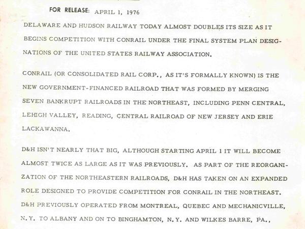New York Times Article Announcing Upcoming D&H and N&W Merger, 1968